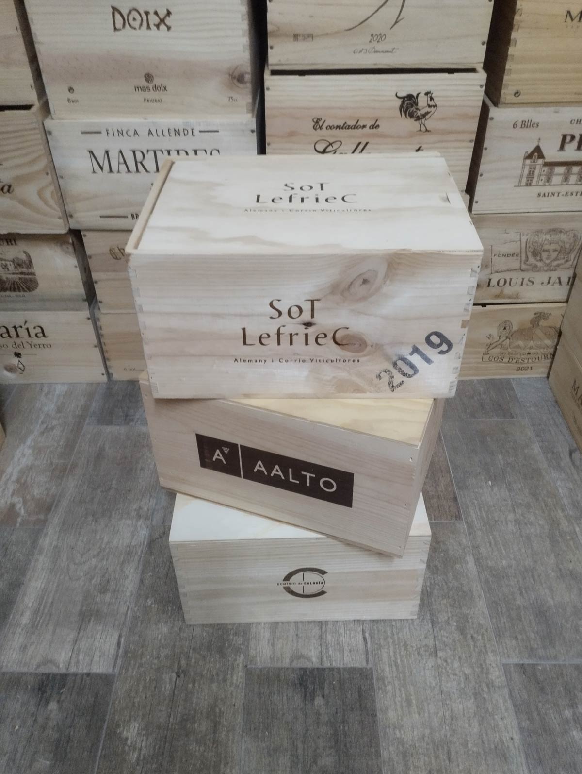 Pack 3 cajas de vino de madera con tapa corredera (6 botellas)