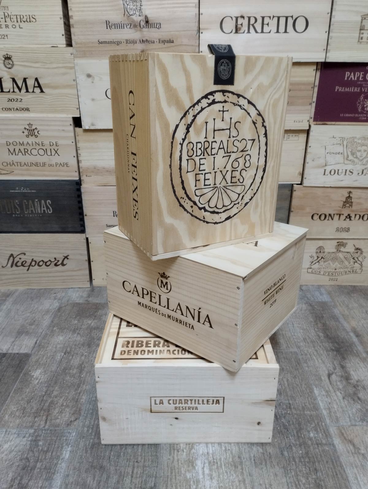 Se enviarán 3 cajas de vino de 6 botellas de capacidad cada una de manera aleatoria. En este pack el dibujo no se puede elegir. Se garantiza que las 3 cajas llevarán distintos dibujos (no se repetirá modelo).